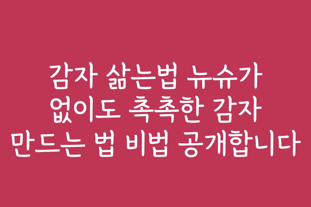감자를 삶는데 어려움을 겪고 계신가요? 뉴슈가 없이도 촉촉한 감자를 만드는 법이 궁금하다면 이 글을 읽어보세요. 간단한 비법으로 누구나 쉽게 살 수 있는 촉촉한 감자를 만드는 방법을 알려드립니다. 감자 삶는법 뉴슈가 없이도 가능한 비법을 공개합니다!
