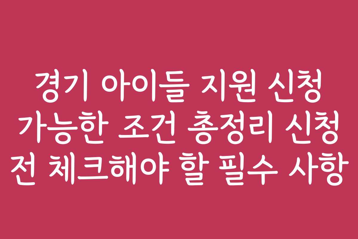 핵심 키워드: 경기 아이들 지원, 지원 가능한 조건, 신청 전 체크사항, 부모의 도움, 경제적 지원, 아동 복지, 경기도 지원 프로그램, 신청 자격, 서류 준비, 혜택 정보, 후기 및 경험