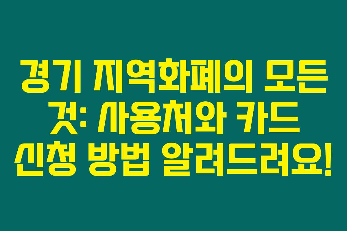 제가 직접 경험해본 결과로는, 경기 지역화폐는 경기도 31개 시·군에서 발행하는 대안화폐로 지역 경제를 활성화하는 데 유용합니다. 사용처도 다양하고, 구입 방법도 상대적으로 간단해 많은 혜택을 누릴 수 있지요. 아래를 읽어보시면 경기 지역화폐의 사용처와 카드 신청 방법까지 자세히 안내해드릴게요.