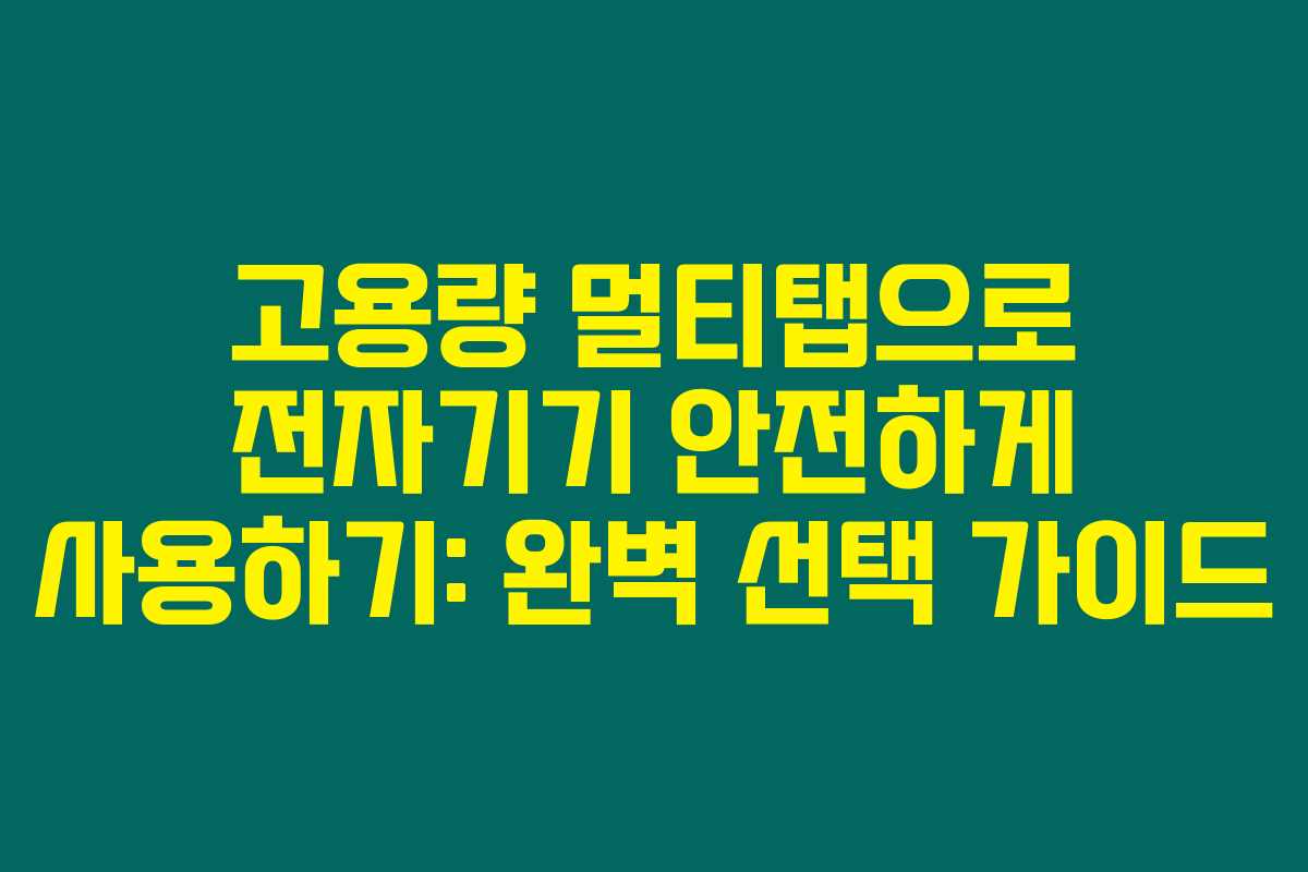 고용량 멀티탭은 오늘날 우리의 가정과 사무실에서 필수적인 도구가 되고 있습니다. 전자기기가 늘어나면서 멀티탭의 수요도 급격히 증가하고 있는데요, 특히 고용량의 멀티탭을 선택하는 것이 중요합니다. 아래를 읽어보시면 고용량 멀티탭의 선택 가이드와 추천 제품에 대한 정보를 상세히 알아보실 수 있습니다.