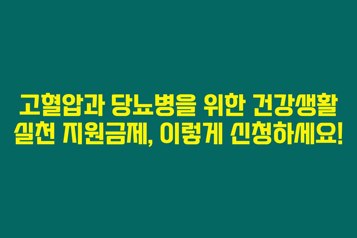 제가 알아본 바로는, 고혈압과 당뇨병은 현대 사회에서 많은 사람들이 직면하는 건강 문제이며, 이러한 질병을 관리하기 위해서는 적절한 식습관과 꾸준한 운동이 필수적이에요. 특히, 건강 수치를 잘 관리하게 되면 컴플리케이션(합병증)을 줄일 수 있는 효과가 있습니다. 그래서 국가에서는 이 두 질병을 앓고 있는 분들을 위해 건강생활 실천 지원금제를 운영하고 있답니다. 아래를 읽어보시면 신청 방법, 대상 및 사용 방법에 대해 자세히 알 수 있습니다.