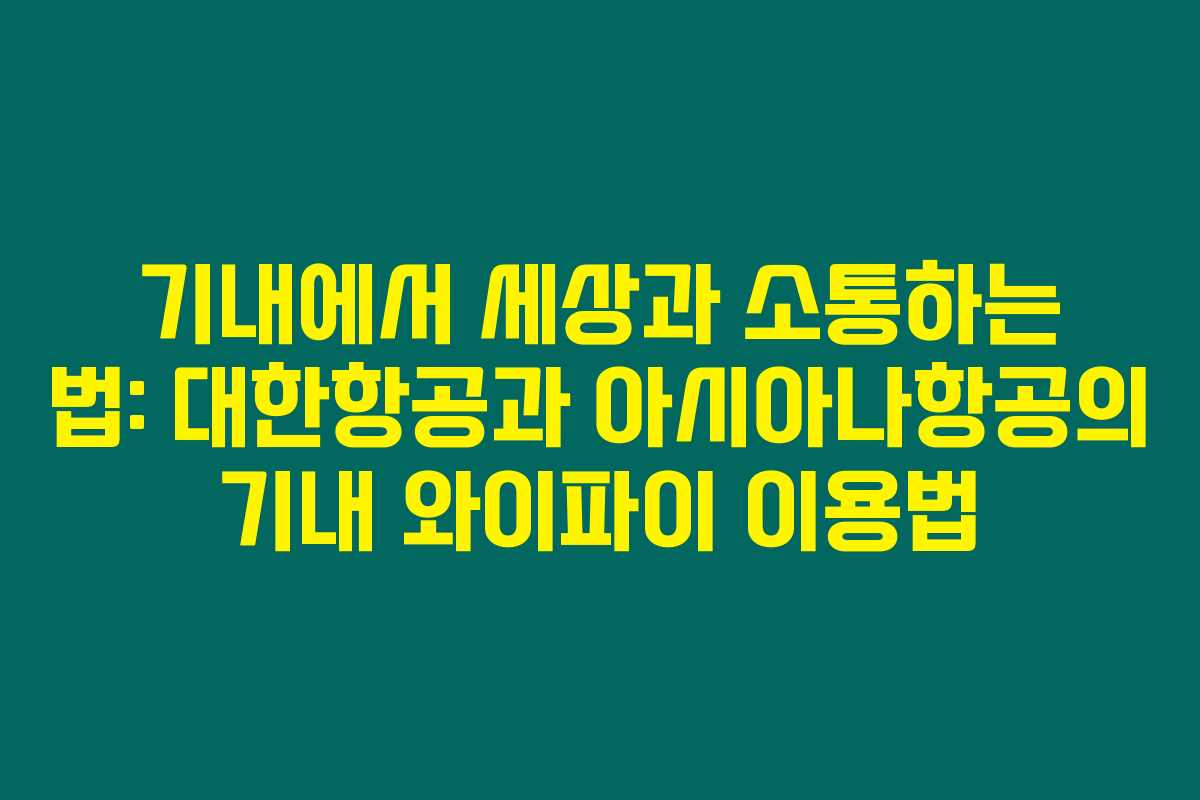 제가 직접 알아본 바로는, 장거리 비행 시 비행기 안의 제한적인 콘텐츠 때문에 답답함을 느끼는 경우가 많아요. 그러나 다행히도 대한항공과 아시아나항공에서는 기내 와이파이 서비스를 제공해주고 있으니, 이 편리한 서비스를 활용해 보시는 것도 좋답니다. 아래를 읽어보시면, 각각의 항공사의 기내 와이파이 사용 방법과 요금제에 대해 자세히 알아볼 수 있을 거예요.