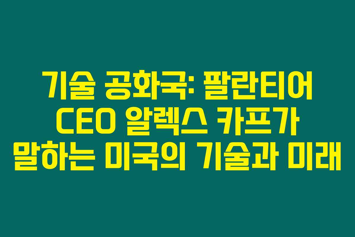 제가 직접 리서치한 바로는 알렉스 카프는 팔란티어의 CEO로서 현대 기술 혁신과 국가 안보의 중요성을 강조하며, 최근 그의 저서 『기술 공화국』과 CNBC 인터뷰를 통해 미국이 당면한 새로운 기술적 도전에 대해 깊은 통찰을 제공하고 있습니다. 아래를 읽어보시면 팔란티어의 철학과 카프가 강조하는 기술의 가치를 잘 이해할 수 있을 것입니다.