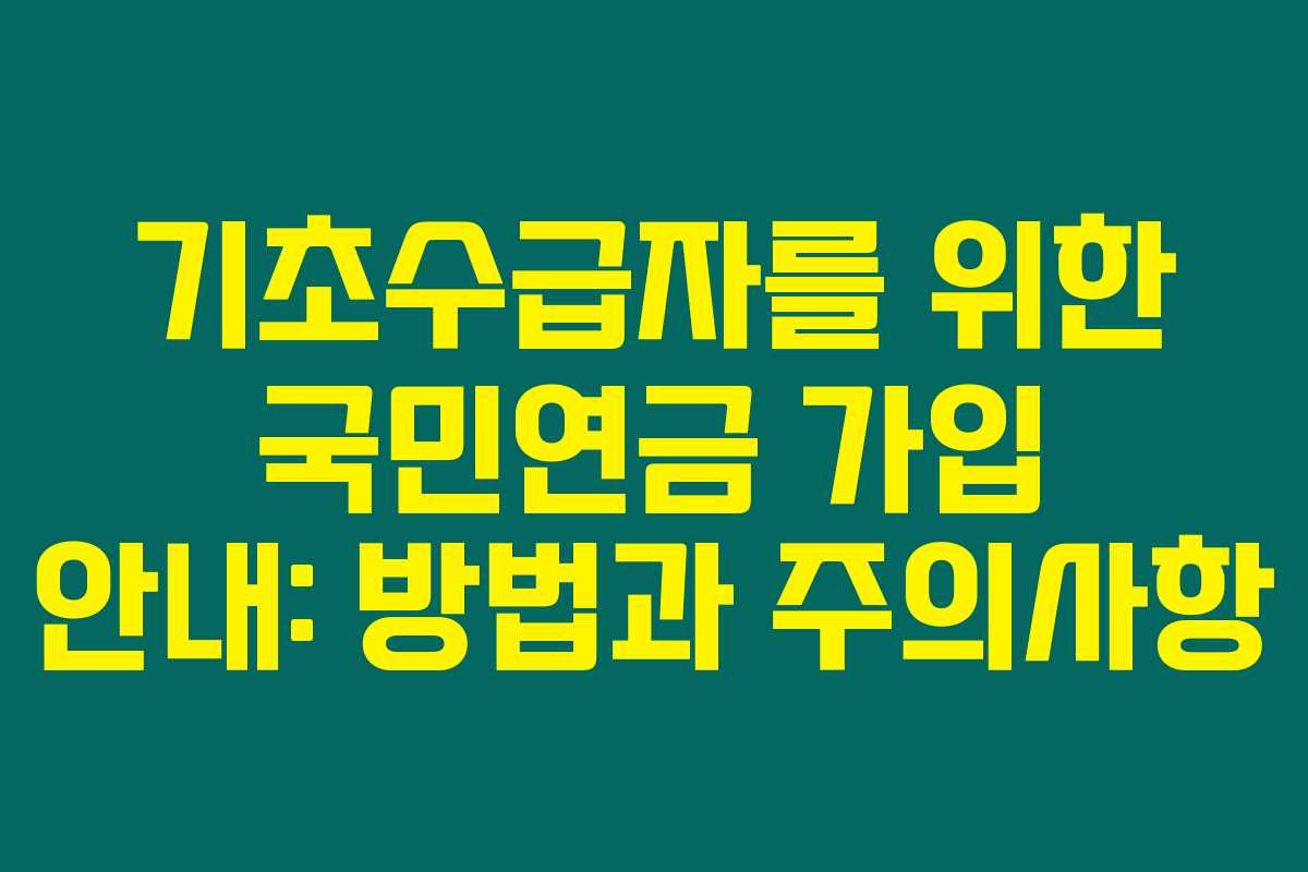 국민연금 가입을 통해 노후를 준비하는 것은 기초수급자에게도 중요한 기회랍니다.