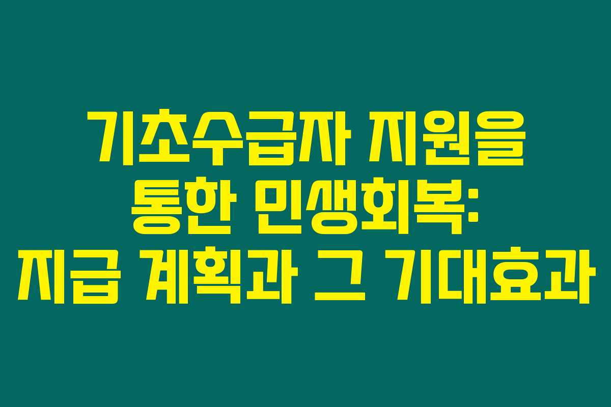제가 직접 리서치한 바로는, 최근 발표된 기초수급자를 지원하는 민생회복지원금 지급 계획이 많은 이들에게 새로운 희망을 안겨줄 것으로 기대되고 있습니다. 이 지원금은 경제적으로 어려운 상황에 처한 기초수급자들에게 실질적인 도움이 될 것이며, 그들의 생활 안정에 기여할 것입니다. 아래를 읽어보시면 이번 지원금에 대한 계획과 기대효과에 대해 자세히 알 수 있습니다.