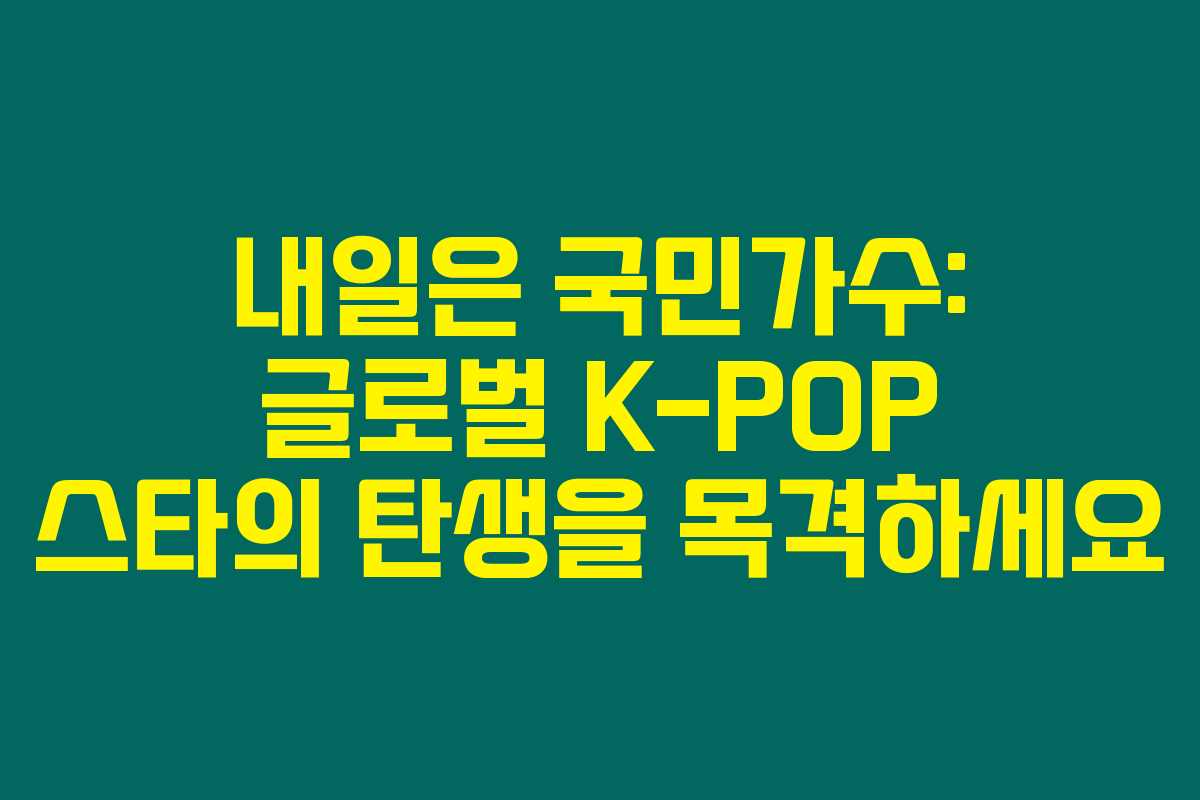 내일은 국민가수를 기다리고 있는 여러분, 매주 목요일 저녁 다양한 매력의 참가자들이 펼치는 아름다운 무대를 놓치고 싶지 않다면 위 내용 꼭 체크해보세요! 감동적인 순간부터 긴장감 넘치는 경쟁까지 우리는 차세대 K-POP 스타의 여정을 함께할 수 있어요. 아래를 읽어보시면 이 프로그램을 200% 즐길 수 있는 방법을 알려드릴게요!