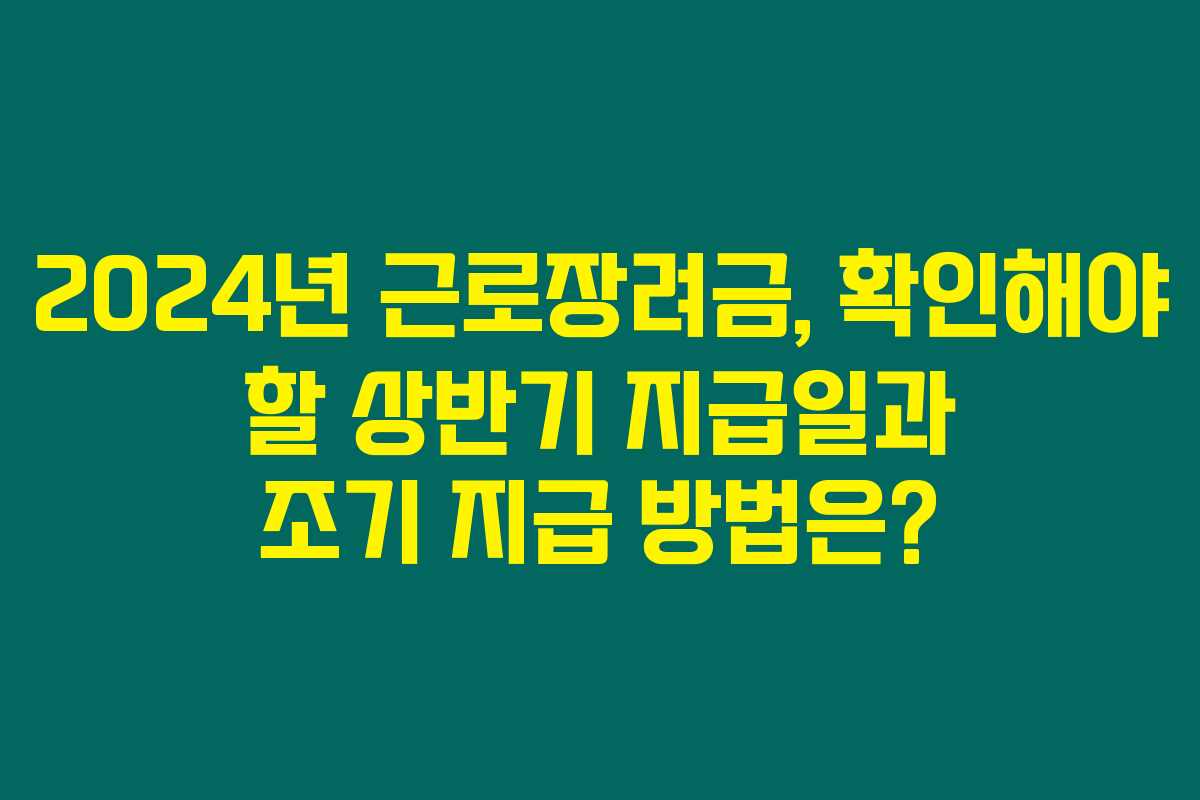 제가 직접 체크해본 바로는 2024년 상반기 근로장려금의 정기 지급일은 8월 말로 예정되어 있습니다. 그런데 조기 지급을 신청하면 6월 말에 혜택을 받을 수 있다는 사실, 알고 계셨나요? 근로장려금 수혜를 위해서는 신청 기간을 놓치지 않아야 하므로, 필요한 정보를 정리해드리겠습니다. 아래를 읽어보시면 더 많은 혜택을 챙기실 수 있을 거예요!
