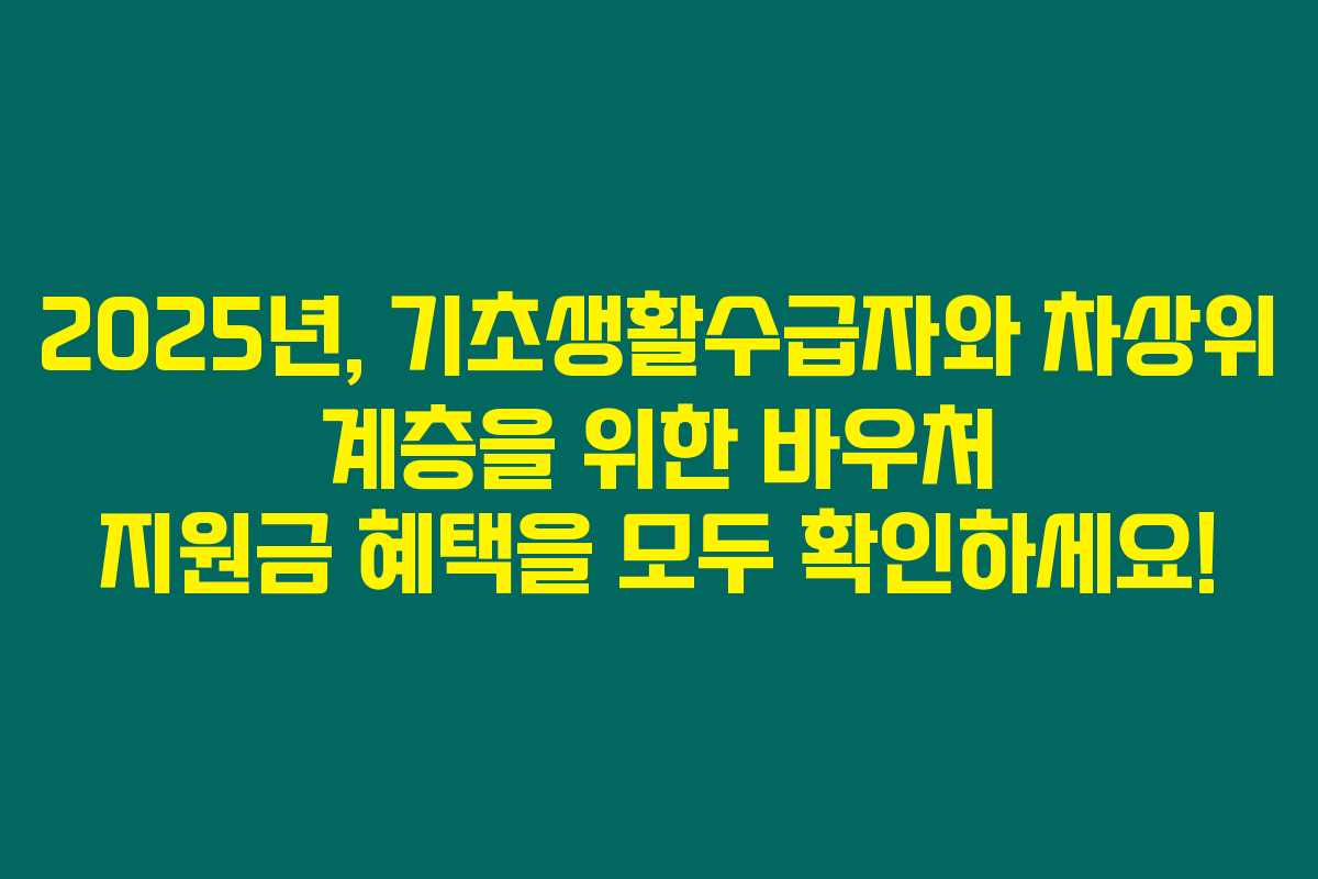 제가 직접 리서치한 바로는 2025년에는 기초생활수급자와 차상위 계층을 위한 다양한 바우처 지원금 혜택이 새롭게 증가하거나 변경되었습니다. 이 내용을 통해 여러분이 받을 수 있는 지원 혜택을 충분히 이해하고, 누락되지 않도록 신청하는 데 도움이 될 거라 믿어요. 아래를 읽어보시면, 놓치기 쉬운 중요한 바우처와 지원금이 무엇인지에 대해 자세히 알아보실 수 있습니다.