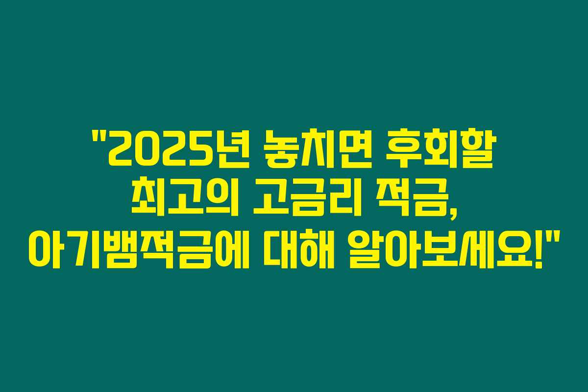 아기뱀적금은 2025년에 태어난 아기를 위한 고금리 적금으로, 아이의 교육자금 준비에 유리하므로 적극 가입을 추천해요.