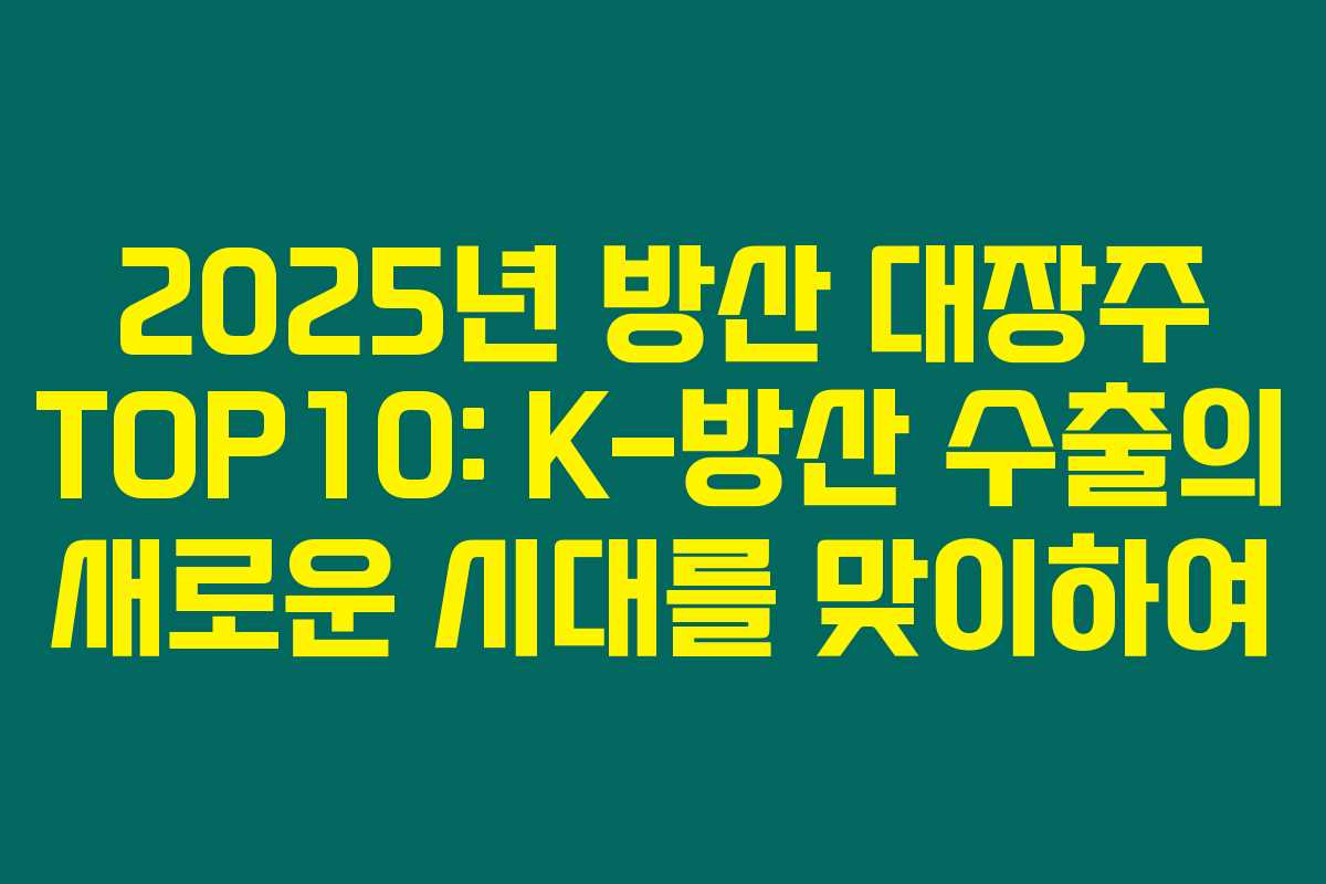 K-방산의 성장은 앞으로도 계속될 것 같아요. 더 많은 방산 관련 기업이 등장하고 있으니 투자에 대한 관심을 가져보시는 것도 좋겠네요!