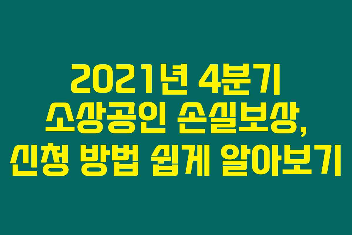 제가 직접 리서치해본 바로는, 2021년 4분기 소상공인 손실보상 지급을 위한 신청 방법과 절차는 특히 소상공인 분들께서 큰 도움을 받을 수 있는 정보입니다. 최근 코로나19로 인해 많은 사업자들이 큰 어려움을 겪고 있는 가운데, 정부의 지원정책이 그나마 희망적인 소식으로 다가오곤 하죠. 아래를 읽어보시면 손실보상금 신청 방법을 자세히 이해할 수 있을 거예요.