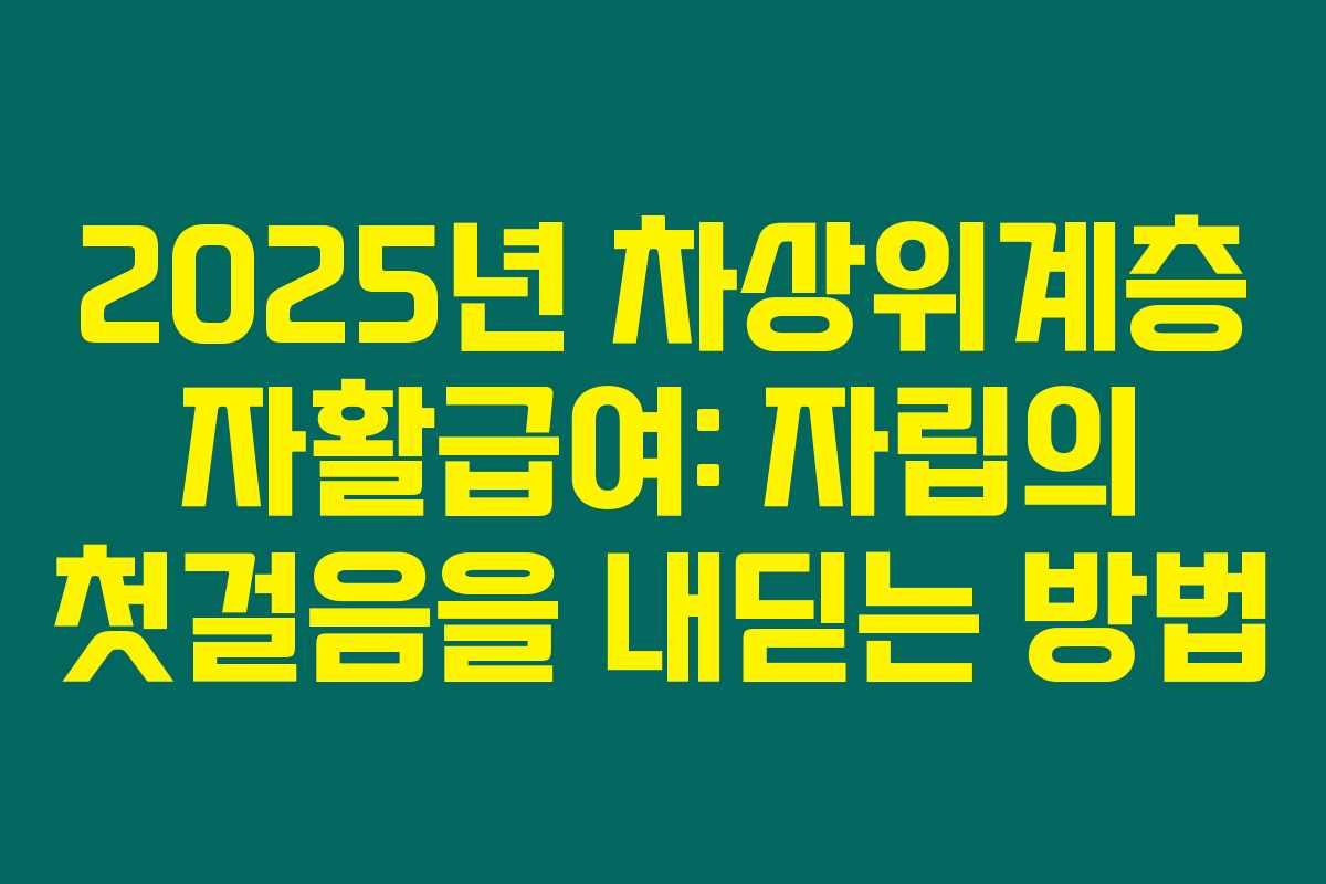 이 글에서는 2025년 차상위계층 자활급여에 대해 제가 검색하고 경험해본 결과를 바탕으로 신청 방법, 지원 조건 및 혜택에 대해 상세히 설명드리겠습니다. 복지제도의 다양성과 자활급여의 중요성을 이해하는 데 도움이 될 것입니다.