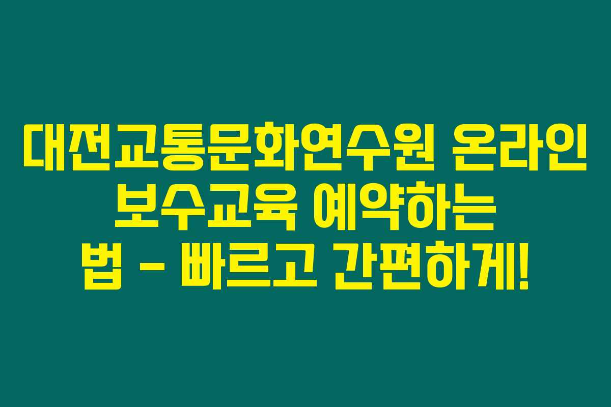 여러분, 간단한 준비와 절차만으로도 대전교통문화연수원의 보수교육 예약을 손쉽게 할 수 있답니다. 시간을 절약하고 꼭 필요한 교육을 받아보세요!