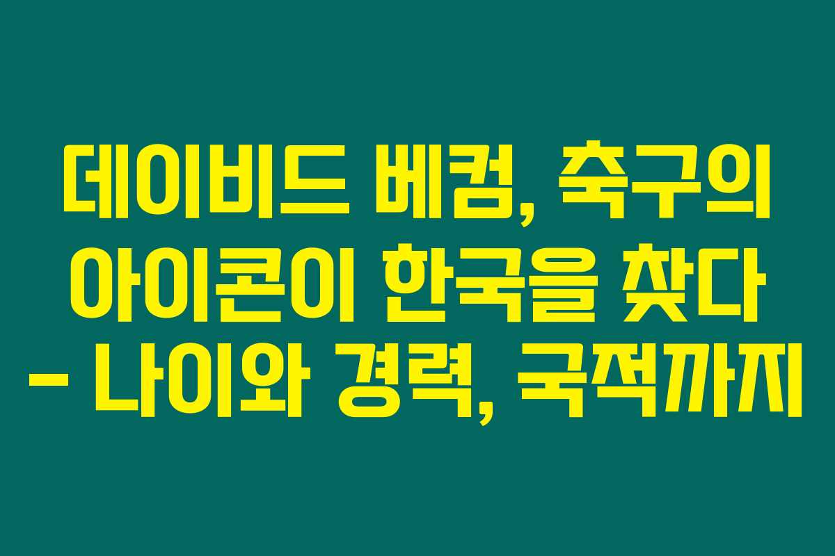 여러분, 데이비드 베컴이 한국에 왔다는 소식 들으셨나요? 축구팬이라면 그는 언제나 귀염둥이 같은 존재인데요. 나이가 어떻게 되는지 경력은 어떤지 궁금하신 분들이 많으실 거예요. 그러니까 아래를 읽어보시면 베컴에 대한 다양한 정보를 알아볼 수 있답니다.