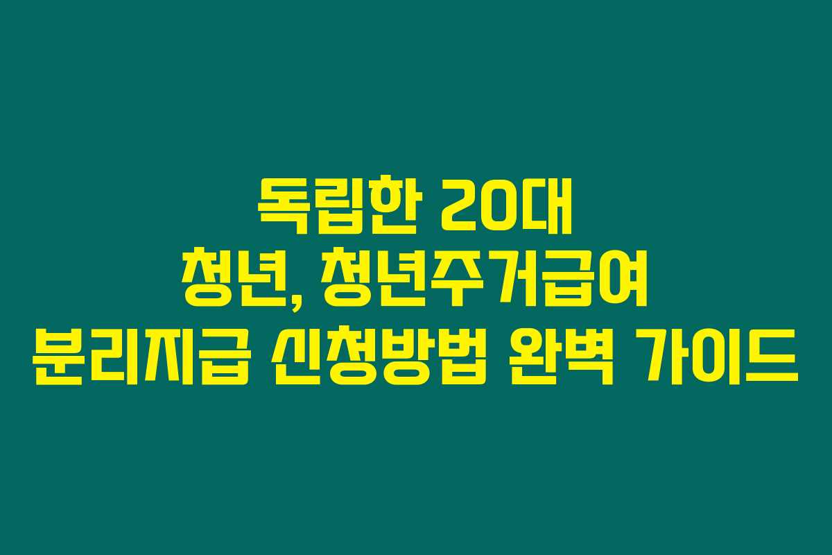 제가 직접 체크해본 바로는, 청년주거급여 분리지급 신청방법은 독립적인 삶을 꿈꾸는 20대 미혼 청년들에게 매우 유용한 정보입니다. 주거비와 학자금 같은 경제적 부담을 덜어줄 수 있는 이 제도에 대해 자세히 알려드릴게요.