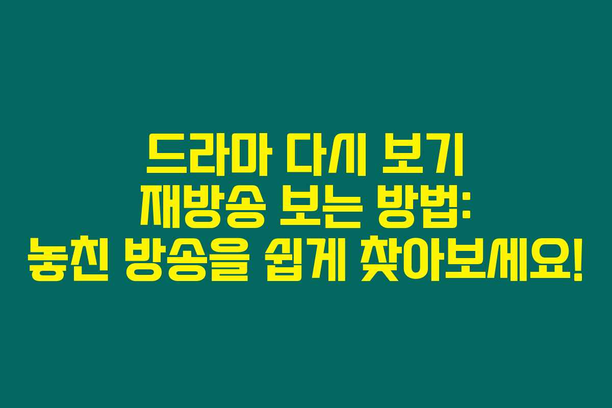 드라마를 놓쳐서 아쉽다면? 재방송 보는 방법을 알아두면 정말 유용해요. 다양한 OTT 서비스와 채널들이 있어서 이제는 다시보기도 간편하게 할 수 있답니다. 아래를 읽어보시면 드라마 다시 보기 및 재방송 방법에 대한 유용한 정보를 알게 될 거예요!