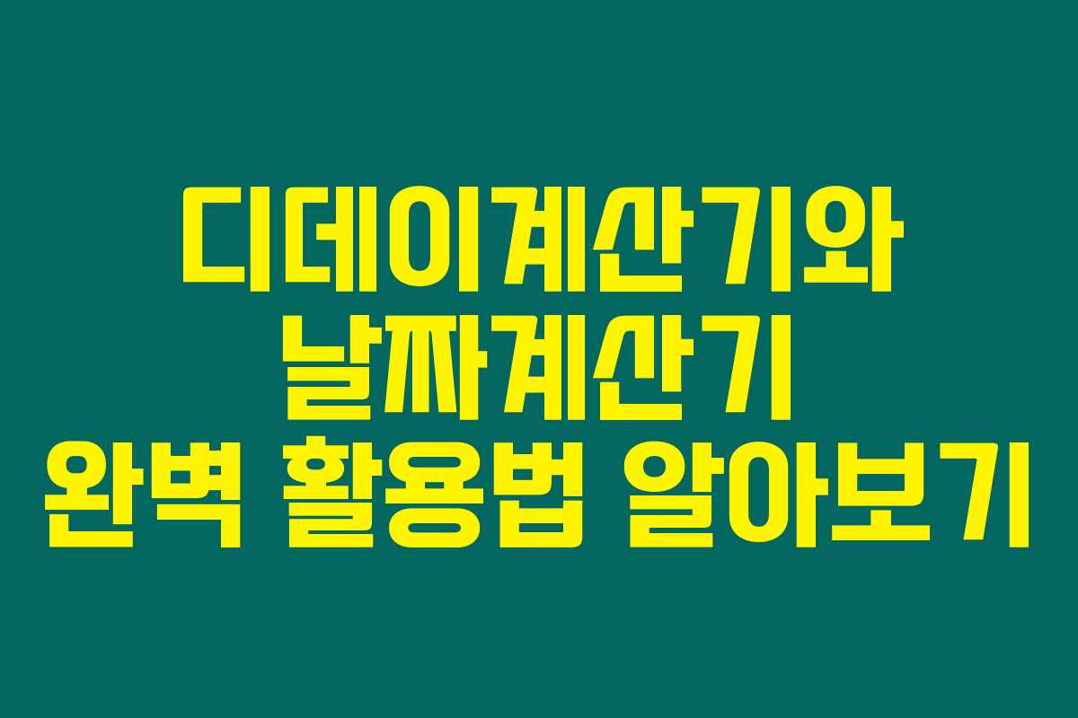 디데이계산기를 찾고 있다면 당신은 중요한 날짜를 놓치지 않기 위해 철저히 준비하고 있다는 뜻이에요. 중요한 날짜가 다가오고 있다는 느낌이 드신다면 이 글을 통해 디데이계산기와 날짜계산기를 어떻게 효과적으로 활용할 수 있는지 알아보세요!