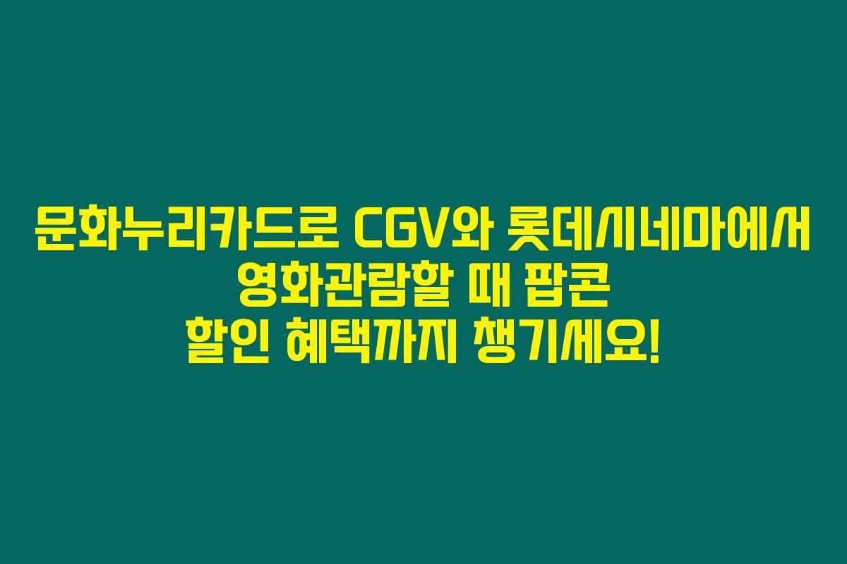 제가 직접 체크해본 바로는, 문화누리카드를 통해 CGV와 롯데시네마에서 할인 혜택을 누리는 방법이 정말 유용하더라고요. 일반적으로 영화관에서 지출하는 금액이 만만치 않은 요즘, 문화누리카드로 받을 수 있는 할인 내용과 팝콘 할인 혜택이 큰 도움이 된답니다. 아래를 읽어보시면, 영화 관람을 더욱 알차게 즐길 수 있는 방법을 알아볼 수 있을 거예요.
