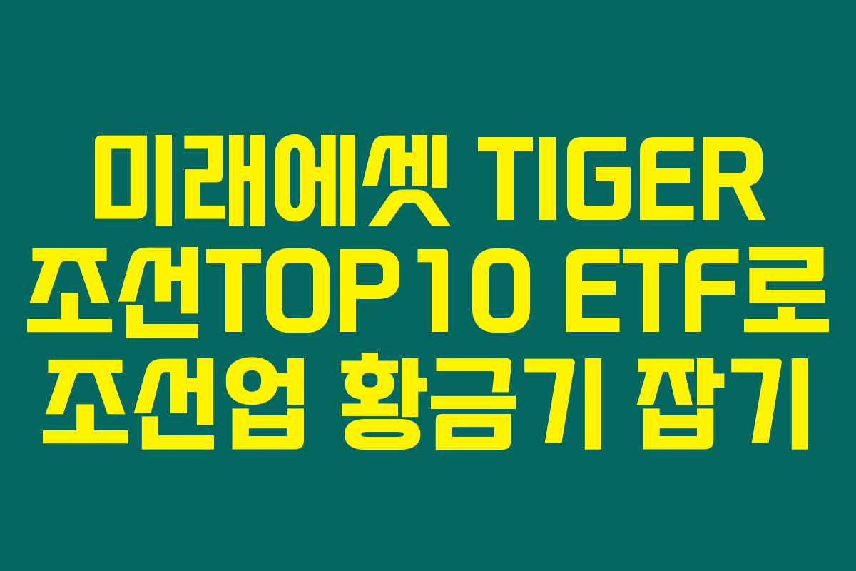 조선산업이 날로 중요해지는 시점에서, 조선 관련 투자 전략은 관심을 받고 있죠. 미래에셋 TIGER 조선TOP10 ETF에 투자하고 싶다면, 그 매력적인 투자 기회를 놓치고 싶지 않을 거예요. 조선업에 대한 이해가 부족하다면, 전문가가 추천하는 조선TOP10 ETF에 관해 아래를 읽어보시면 많은 도움이 될 거랍니다.