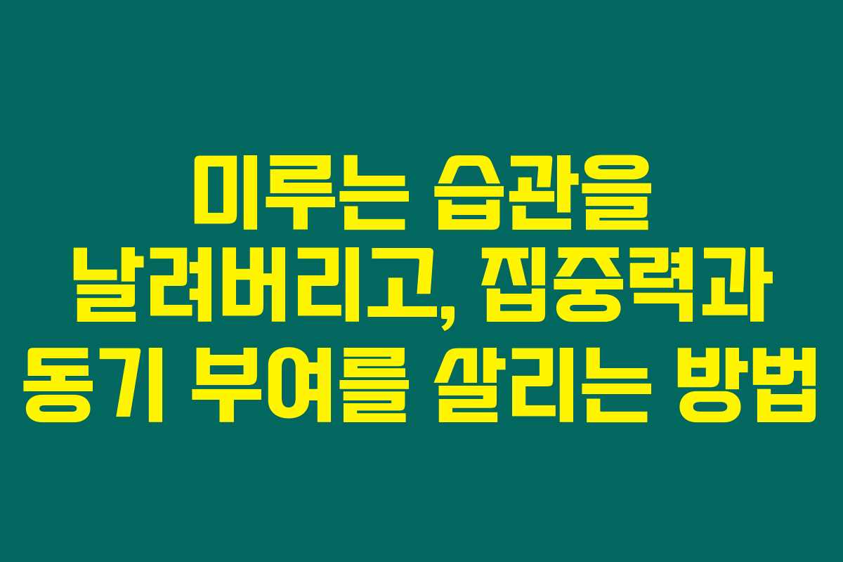 제가 직접 경험해본 결과, 미루는 습관은 우리의 목표 달성에 끊임없는 장애물이 되어버릴 수 있어요. 일을 쌓아두고 싶은 유혹은 너무 강력해서 결국에는 스트레스와 죄책감으로 이어지기도 한답니다. 아래를 읽어보시면 미루는 습관을 극복하고, 동시에 집중력과 동기를 부여할 수 있는 유용한 요령들을 소개할게요.