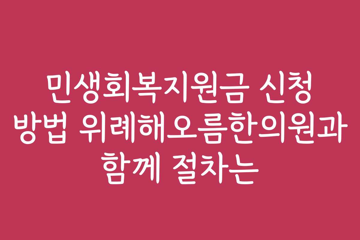 핵심·연관 키워드: 민생회복지원금, 신청 방법, 위례해오름한의원, 경제 회복, 지원금 절차, 상담 서비스, 필요한 서류, 지원 혜택, 성공적인 신청, 자주 묻는 질문, 신청 후 소요 시간