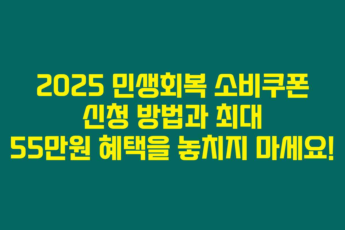 2025년의 민생회복 소비쿠폰은 최대 55만원까지 지원받을 수 있는 프로그램으로 꼭 신청하셔야 혜택을享受할 수 있습니다. 사용처와 유의사항을 잘 숙지하고, 잊지 말고 신청해 주세요! 추가적인 혜택 소식이 필요하시다면 계속해서 블로그를 찾아주세요.