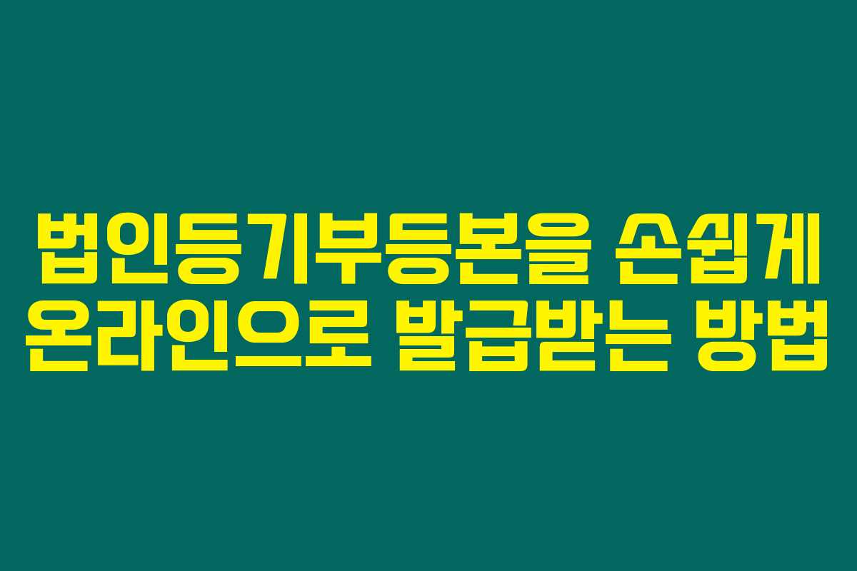 법인등기부등본을 온라인으로 발급받는 방법은 간단해요. 아래 절차를 따라 해보세요.