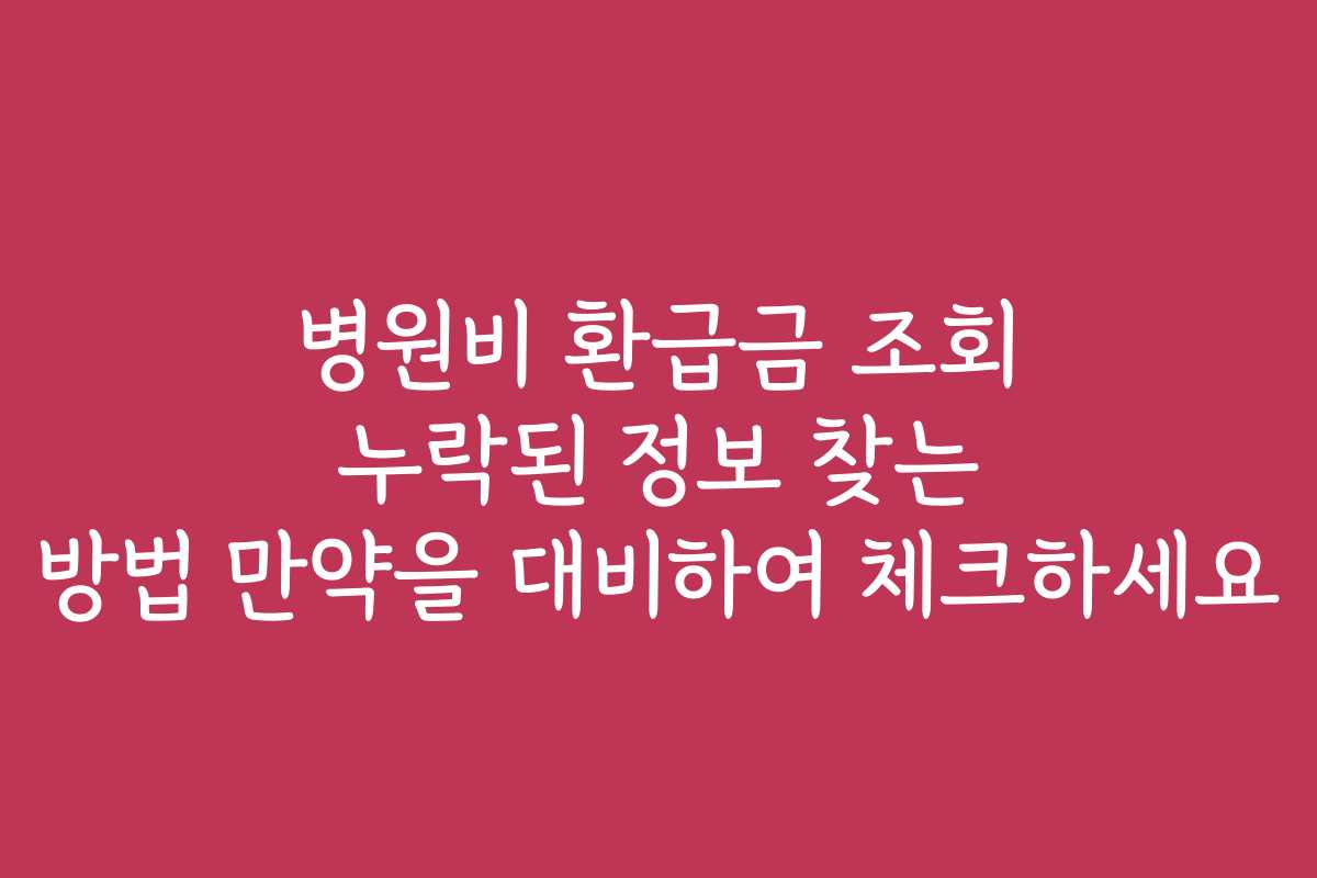 병원비 환급금 조회 누락된 정보 찾는 방법 만약을 대비하여 체크하세요