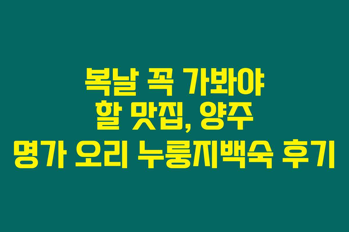 오늘의 후기가 여러분에게 도움이 되었으면 좋겠어요. 보양식으로 알려진 오리 누룽지백숙이 얼마나 좋은 경험이었는지 잊지 못할 것 같아요. 초복을 맞아 여러분도 양주 명가에서 꼭 한 번 드셔보세요. 정말 푸짐하고 맛있답니다!
