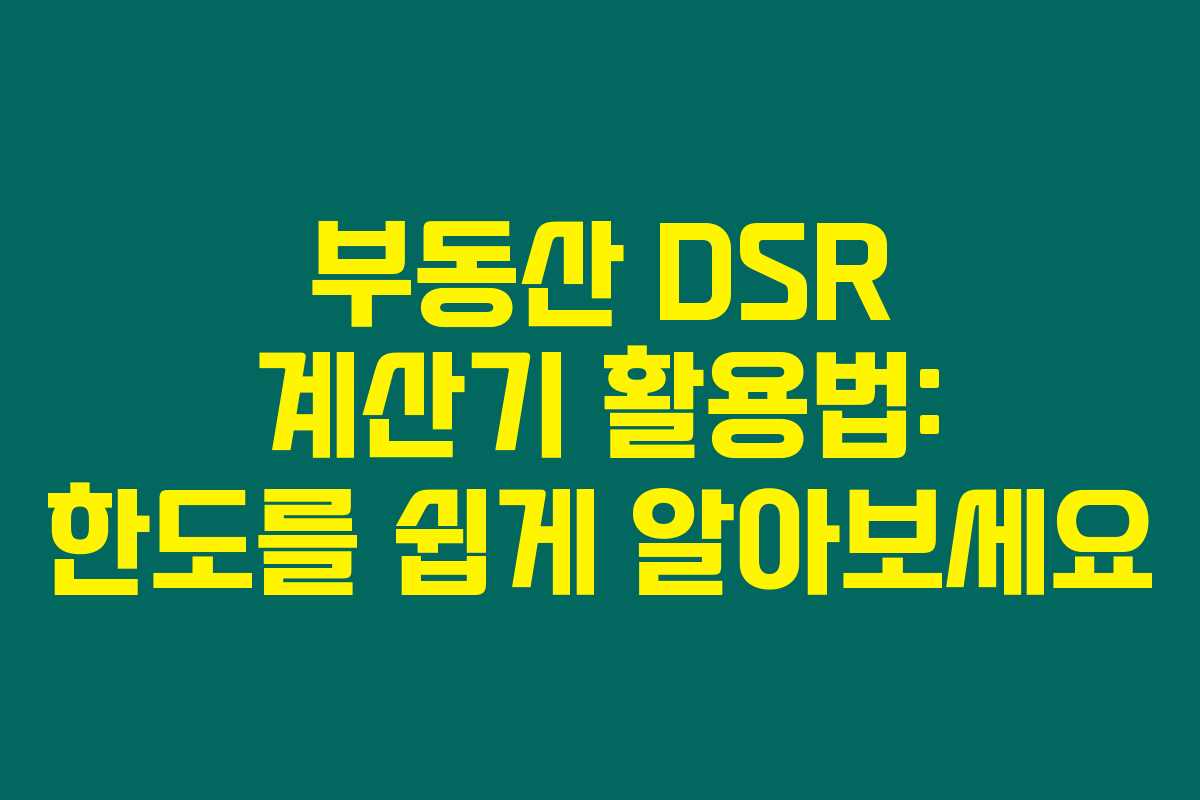 부동산 DSR 계산기를 활용하여 보다 나은 금융 관리를 해보세요!