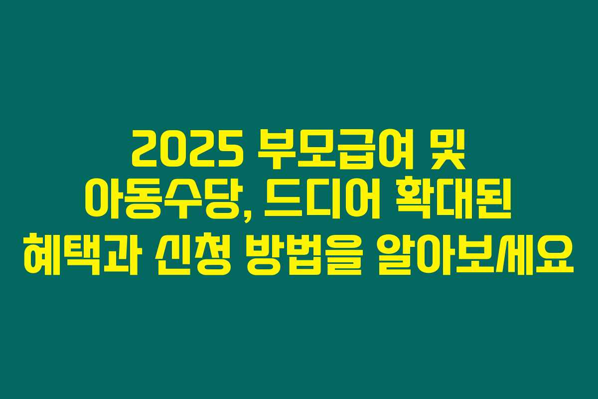 제가 직접 체크해본 바로는 2025년부터 부모급여와 아동수당이 크게 확대되어 부모님들에게 더 많은 경제적 지원이 이루어질 예정입니다. 이 기회에 자녀 양육에 대한 부담을 덜 수 있는 방법을 알아보는 것은 정말 중요하답니다. 아래를 읽어보시면 자세한 내용과 신청 방법에 대해 이해할 수 있습니다.