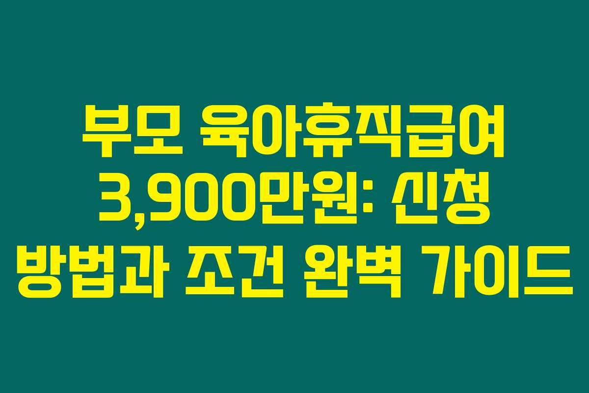 부모 육아휴직 급여 3,900만원을 받기 위해서는 일정한 조건을 충족해야 해요. 제가 확인해본 바로는, 주요 조건은 다음과 같답니다.