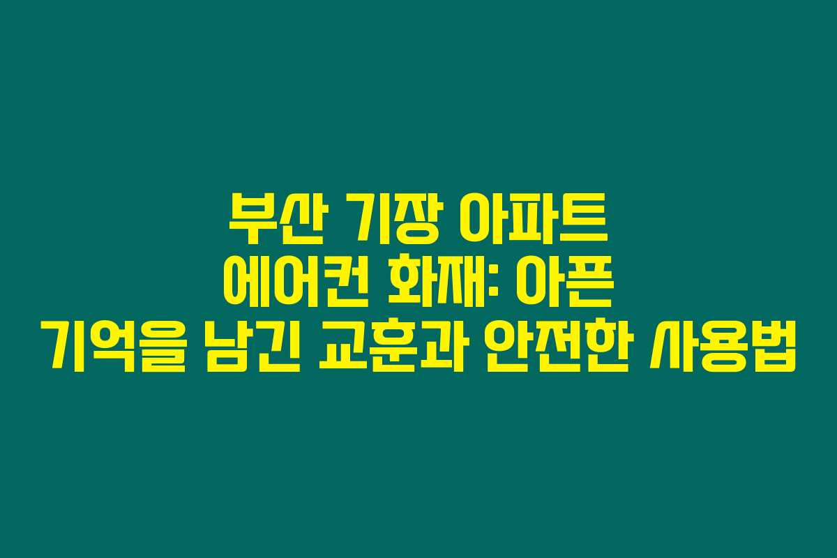 부산 기장 아파트의 에어컨 화재 사고는 우리 모두에게 안전의 중요성을 상기시켜 줍니다. 지금 이 순간에도 여러분의 가정과 주변이 안전한지를 다시 한 번 체크해 보세요.