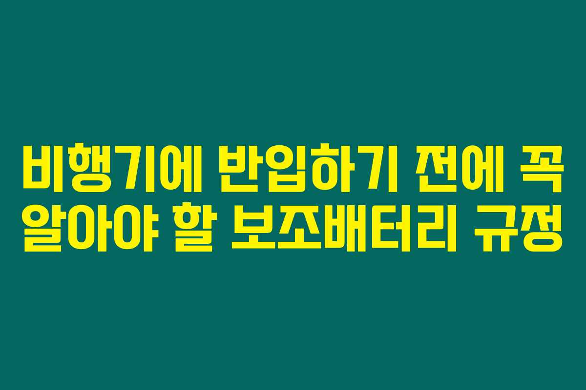 제가 직접 경험해본 결과로는, 보조배터리의 기내 반입 규정은 여행의 안전과 직결되기 때문에 여행 전에 꼼꼼히 확인하는 것이 가장 좋답니다. 규정을 잘 준수하고 즐거운 비행이 되시길 바라요!