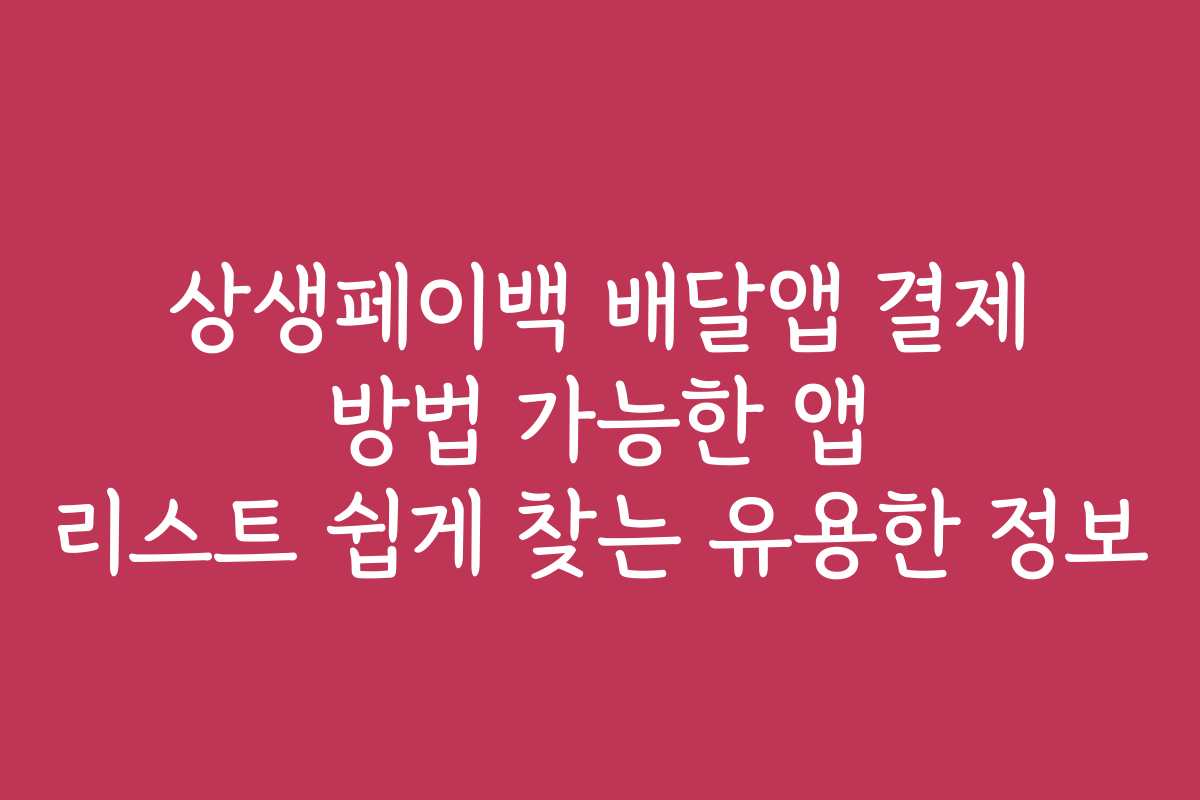 상생페이백, 배달앱 결제 방법, 소비자 혜택, 지역 경제 지원, 할인 프로그램, 배달의민족, 쿠팡이츠, 요기요, 소상공인 지원, 배달 서비스, 결제 옵션