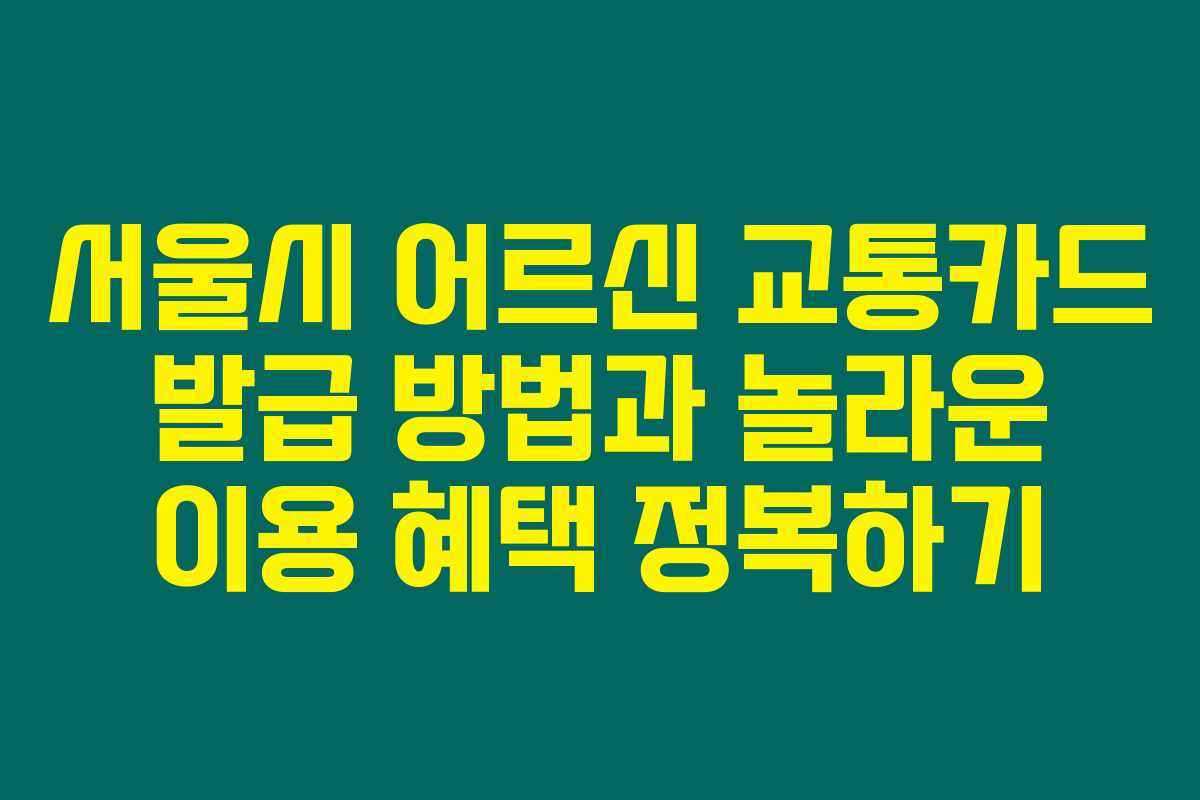제가 직접 확인해본 결과, 어르신 교통카드는 만 65세 이상의 어르신들이 서울과 수도권 대중교통을 이용하는 데 정말 큰 도움이 되는 카드입니다. 특히 직관적으로 무료로 지하철을 타고 이동할 수 있어 교통비 절감에도 많은 도움이 됩니다. 아래를 읽어보시면 어르신 교통카드를 발급받는 방법과 다양한 혜택에 대해 꼼꼼히 정리한 내용을 확인하실 수 있습니다.