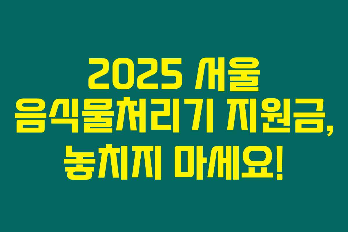 여러분이 보다 나은 생활과 환경을 위해 음식물처리기 지원금 2025 서울을 적극 활용하길 바랍니다. 이번 기회를 절대 놓치지 마세요!