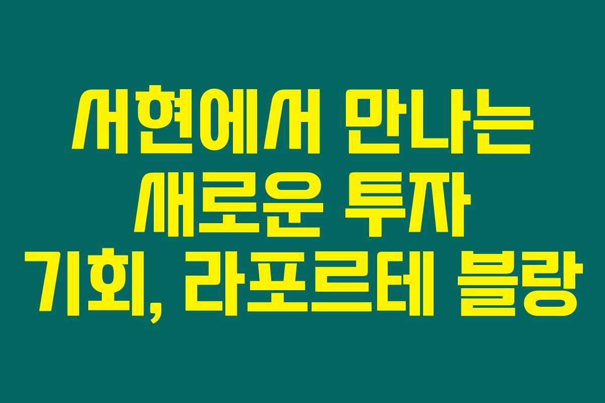 다양한 선택과 성장을 추구하는 입주자들에게 라포르테 블랑 서현은 무척 매력적인 옵션으로 다가옵니다. 새로운 주거 환경을 원하신다면, 이 기회를 놓치지 마세요!