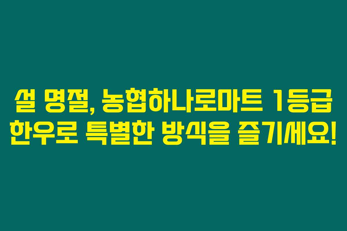 이번 설 명절, 농협하나로마트에서 진행하는 1등급 한우 할인행사는 정말 놓치기 아쉬운 기회입니다. 저는 여러분이 세일 기간에 맛있고 질 좋은 한우를 가족과 함께 즐길 수 있기를 바랍니다. 식탁 위의 소중한 한 순간, 잊지 못할 명절이 될 거예요!