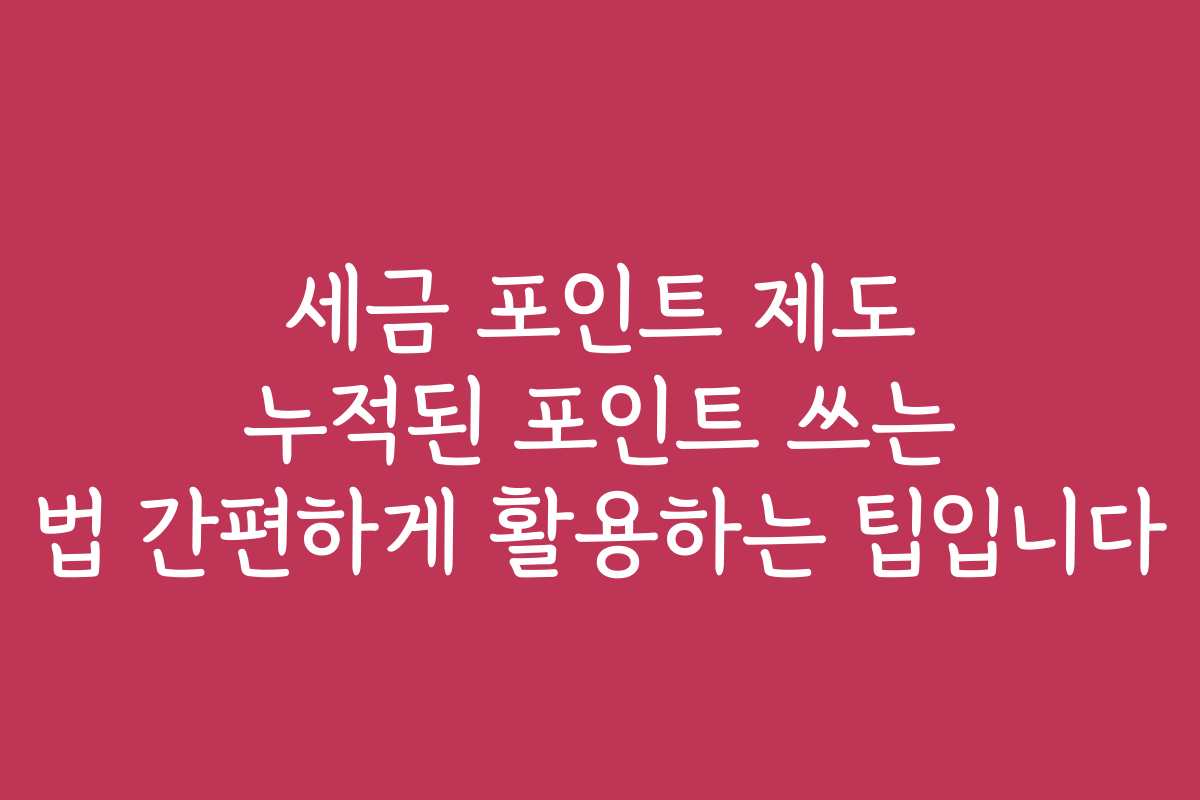 세금 포인트 제도 누적된 포인트 쓰는 법 간편하게 활용하는 팁입니다
