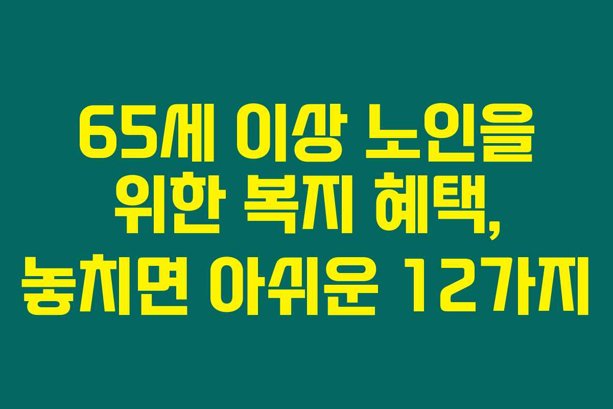 제가 직접 체크해본 바로는, 65세 이상 노인들이 누릴 수 있는 다양한 복지 혜택이 정말 다양하답니다. 이 글에서는 꼭 알아두셔야 할 12가지 노인 복지 혜택에 대해 살펴보겠습니다. 아래를 읽어보시면 어르신들께서 이런 혜택을 어떻게 받을 수 있는지에 대해 쉽게 이해하실 수 있을 거예요.