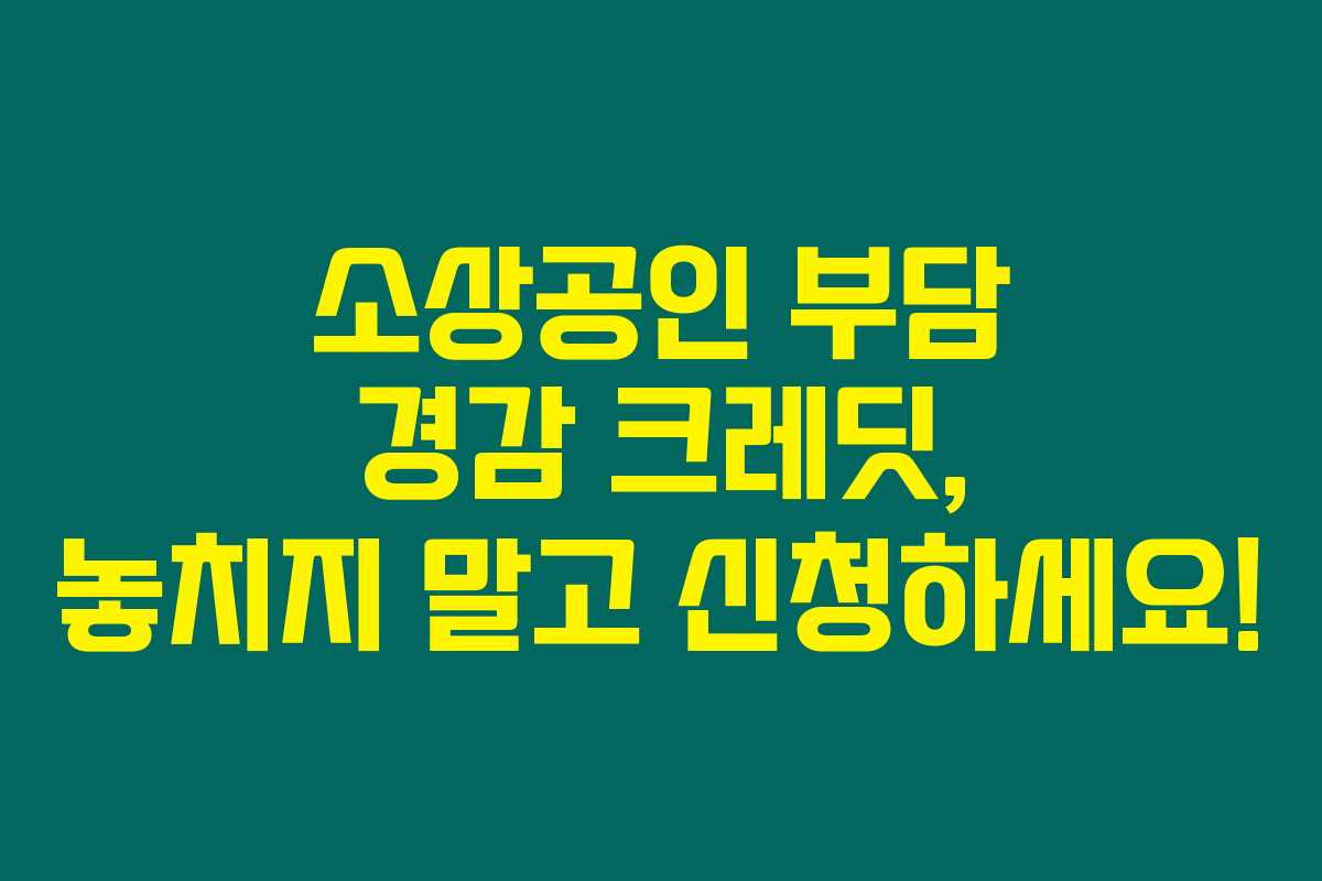 소상공인 부담 경감 크레딧, 잊지 말고 신청하세요! 여러분의 재정적 부담을 덜고 안정적인 경영을 이루는 기회가 될 거예요.