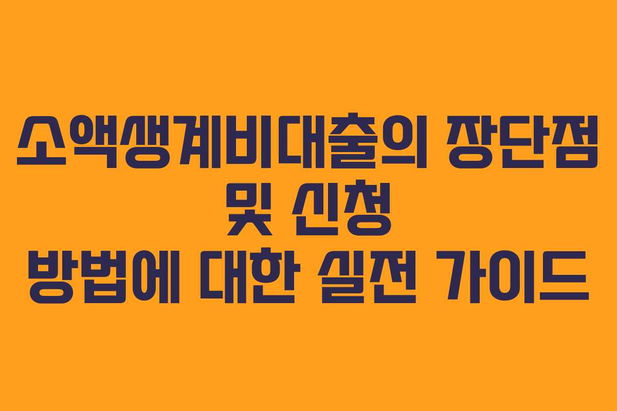 소액생계비대출은 예상치 못한 자금 부족 상황에서 유용한 선택지가 될 수 있습니다. 이 글에서는 소액생계비대출의 정의, 장단점, 신청 방법을 포함해 2026년 현재의 정보로 업데이트한 내용을 제공합니다.