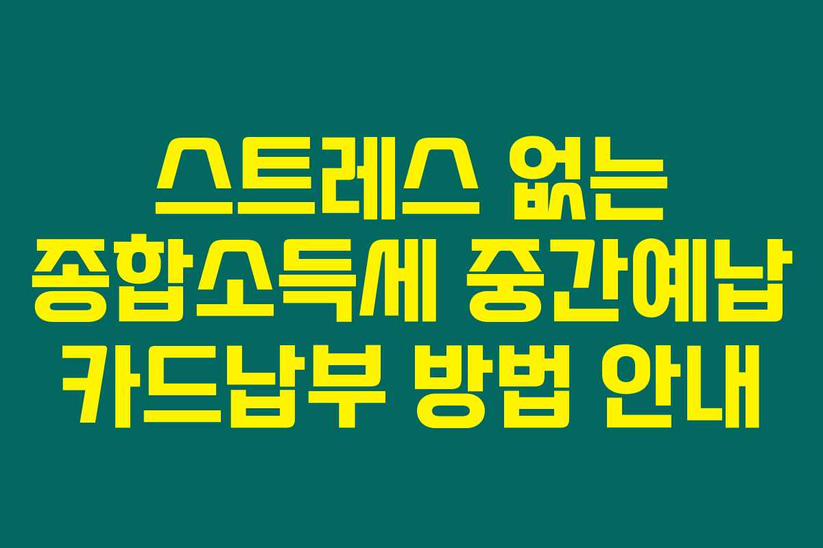 종합소득세를 카드로 납부하는 방법은 간단하고 몇 가지 단계를 통해 진행할 수 있습니다. 아래의 절차를 참고하세요.