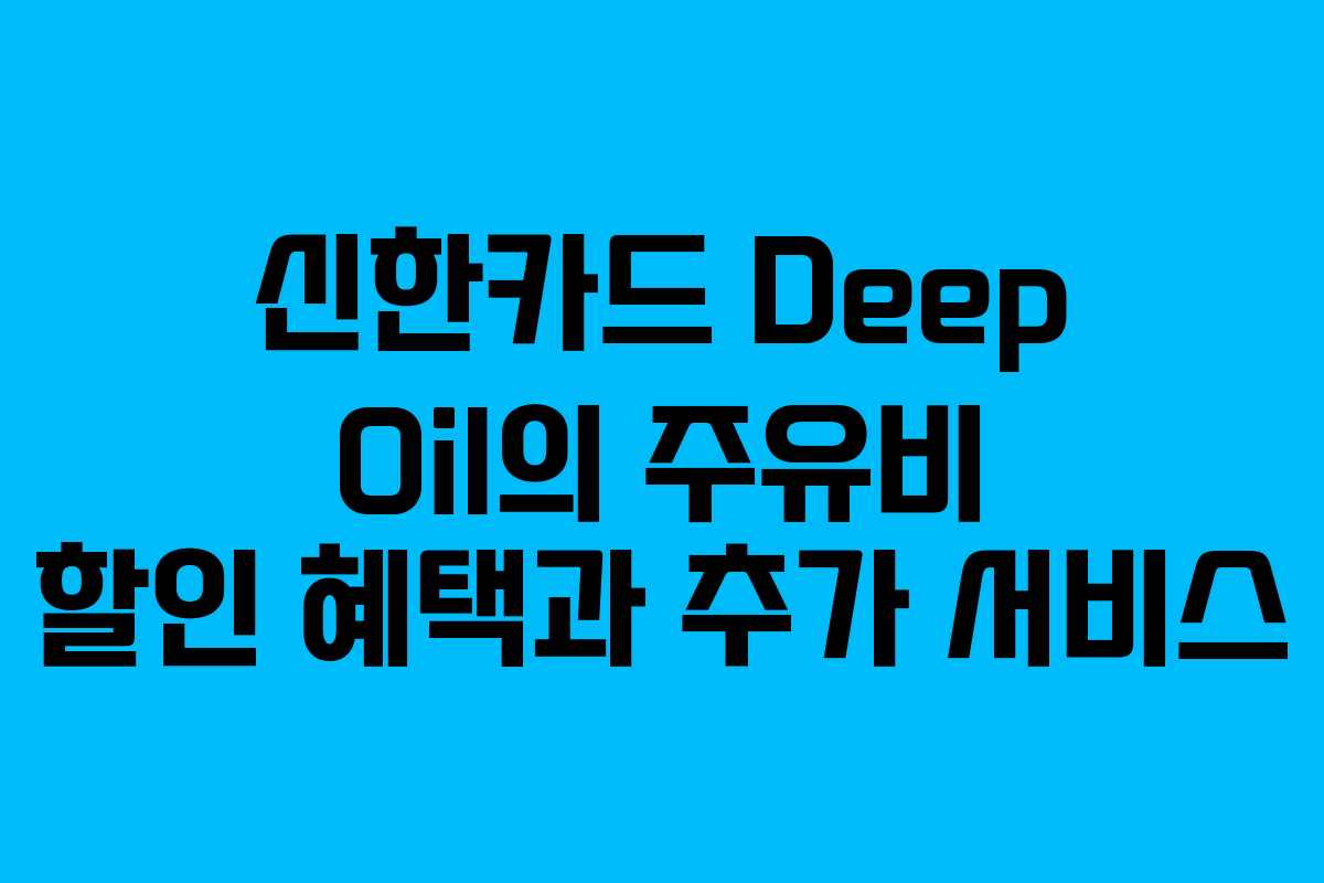 신한카드 Deep Oil은 주유비 할인 외에도 다양한 서비스 혜택을 제공하는 카드입니다. 이 카드의 주요 특징과 사용 방법을 살펴보겠습니다. 특히 2026년 기준으로 최신 정보를 반영하여 설명합니다.
