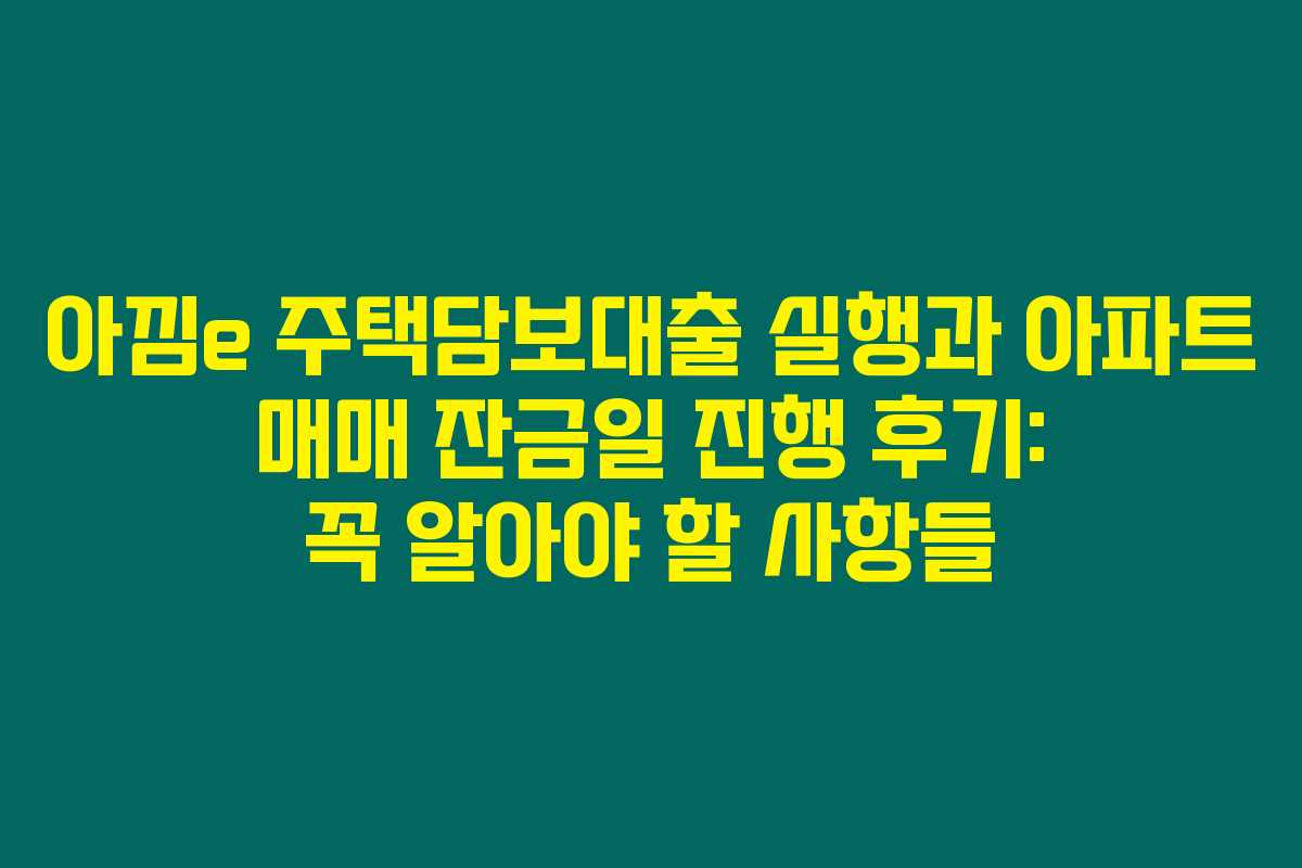 제가 직접 경험해본 결과로는 아파트 매매 잔금일에 아낌e 주택담보대출 실행 과정을 통해 많은 것들을 느꼈습니다. 이 글에서는 제가 겪은 잔금일 당일의 진행사항, 필요한 서류, 주의할 점 등을 상세히 공유하고자 합니다. 아래를 읽어보시면 아파트 매매 잔금일에 대출을 진행할 때 어떤 점들에 유의해야 하는지에 대해 많은 도움을 얻으실 수 있을 거예요.