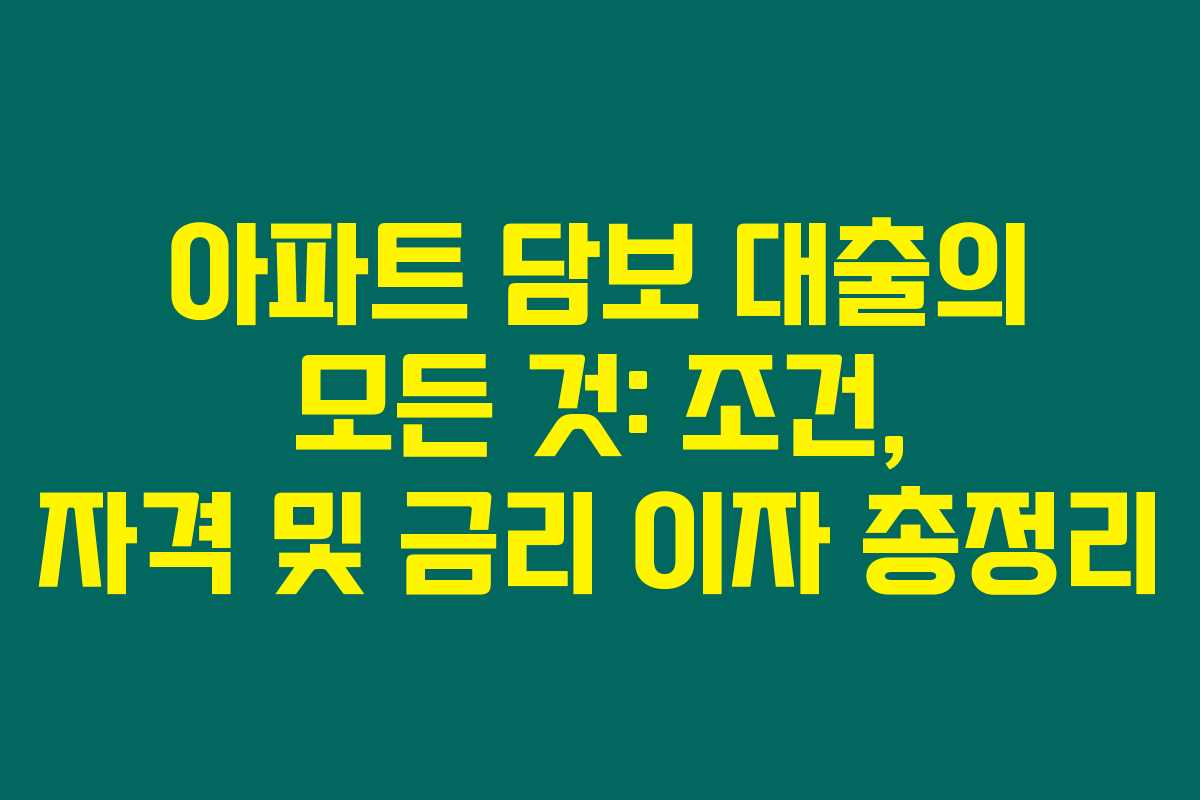 제가 직접 체크해본 바로는 아파트 담보 대출은 주택을 구매하는 데 있어 많은 이점과 다양한 옵션을 제공하는 중요한 금융 상품입니다. 아파트를 담보로 잡고 대출을 받는 만큼, 금리가 상대적으로 낮고 대출 한도가 높아지는 등 많은 장점이 있지요. 아래를 읽어보시면, 아파트 담보 대출의 주요 조건, 자격, 금리 및 이자에 대한 모든 정보를 자세히 살펴볼 수 있어요.