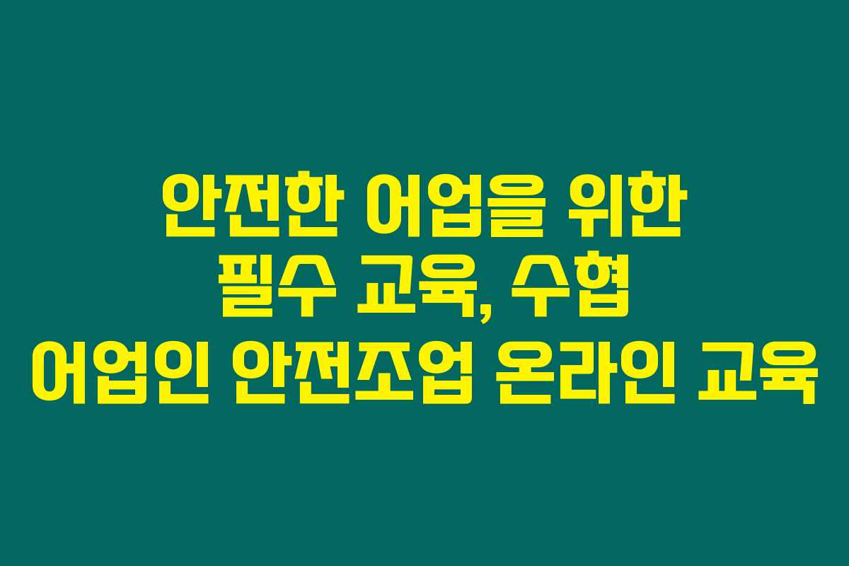 수협 어업인 안전조업 온라인 교육을 통해 여러분이 보다 안전한 어업인으로 거듭나길 바랍니다. 언제나 안전을 최우선으로 생각하며, 즐겁고 안전한 어업 생활을 보내세요!
