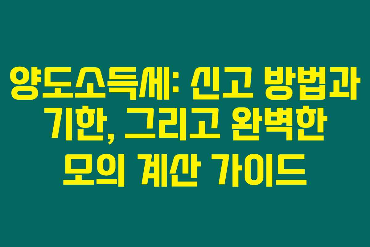제가 알아본 바로는 양도소득세는 부동산이나 주식과 같은 자산을 판매할 때 발생하는 세금입니다. 적절한 신고와 납부 방법을 숙지하는 것이 매우 중요합니다. 아래를 읽어보시면 이번 포스팅에서 양도소득세의 신고방법과 신고기한, 모의 계산 방법에 대해 총정리한 내용을 확인할 수 있습니다.