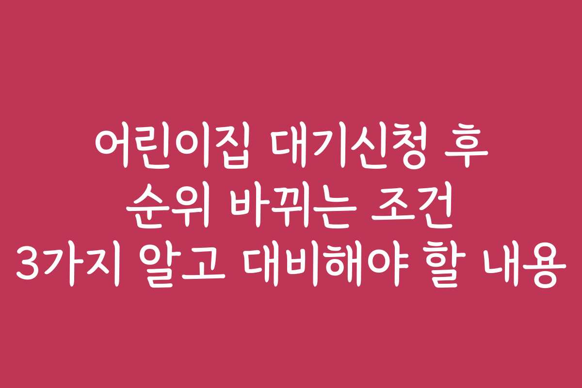 어린이집 대기신청 후 순위가 바뀌는 조건은 여러 가지가 있습니다. 그중 주목할 만한 세 가지 조건은 다음과 같습니다: